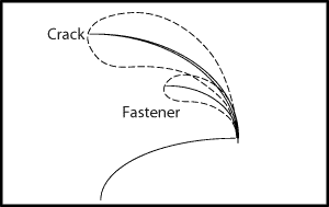 When the probe moves over a fastener hole with a crack the indication changes and typically will create a larger loop and vertical movement (see Figure 4).