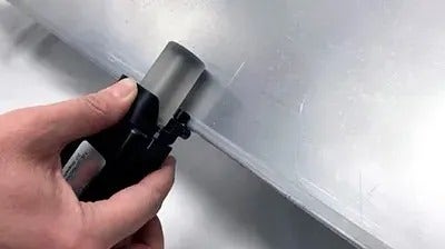 Der EdgeFORM Sensor rollt gleichmäßig auf Oberflächen ohne Anstrich, ohne dabei Kratzer oder sichtbare Spuren zu hinterlassen. Der Druck des Rollsensors ermöglicht ein gleichmäßiges Ankoppeln entlang der Klebnaht. Im C-Bild werden Bereiche ohne Klebeverbindung rot und Bereiche mit Klebeverbindung blau angezeigt.