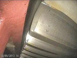 Zur Schmierung des Getriebes wird Öl genutzt und dies befindet sich auch auf den Zahnrädern und Lagern. Während der Inspektion dieser Teile mit dem Endoskop, muss der Anwender das Objektiv ölfrei halten. Das IPLEX Videoskop mit 6,2mm Außendurchmesser und integriertem Arbeitskanal ermöglicht die Einleitung von Druckluft in das Getriebe zur Reinigung der Zahnräder und Lager vom Öl. Auch wenn Öl am Objektiv des Videoskops haftet, kann dies mit Druckluft entfernt werden und reduziert so das ständige reinigen mit einem Tuch.