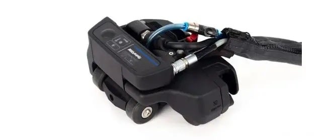 Der Mini-Wheel Weggeber wird zur Positionierung und Größenbestimmung von Fehlern auf der Scan-Achse eingesetzt. Er synchronisiert die Prüfdatenerfassung mit der Sensorbewegung. Er ist zudem wasserfest und mit den Standard PA-Vorlaufkeilen von Evident kompatibel.