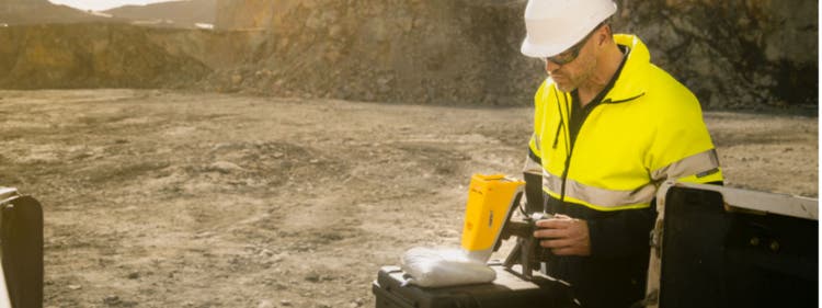 Prüfer mit RFA-Handanalysator Vanta Max für ganztägige Tests im Außeneinsatz.