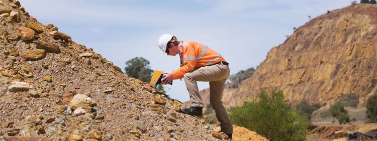 Tragbare RFA-Analysatoren liefern schnelle Ergebnisse bei Vor-Ort-Messungen von Elementen für einer Reihe von Analyseanwendungen in Bergbau und Geochemie, beispielsweise im Rahmen der Mineralexploration, Erzgehaltskontrolle und Umweltüberwachung.