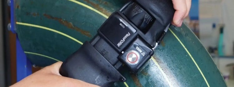„Wir verwenden den FlexoFORM auch für Rohrbogenabschnitte. Dieses Gerät eröffnet uns eine Lösung, die wir bisher nicht hatten. Wir haben sehr kleine herkömmliche Sensoren verwendet, um Punktdickenmessungen durchzuführen. Doch mit dieser Rasterprobe konnten wir keine hundertprozentige Verifizierung durchführen. Außerdem hatten wir kein Rendering des Bildmaterials. Mit dem FlexoFORM Scanner können wir die gesamte Oberfläche prüfen und kartieren.”