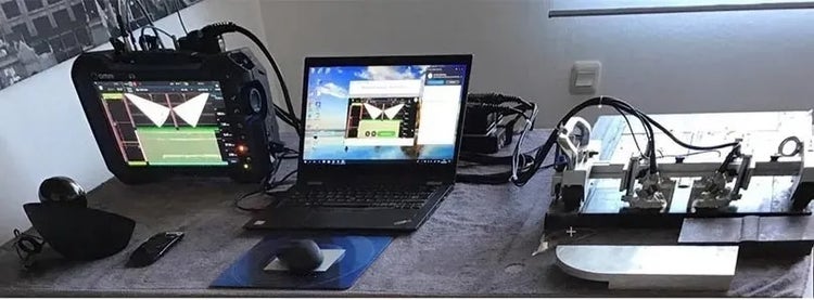 Ein NORTEC 600 Wirbelstromprüfgerät von Evident prüft während einer Online-Demonstration Edelstahl und erkennt kleine ferritische Einschlüsse.