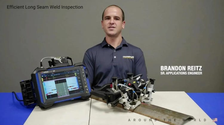 Wie Brandon Reitz in seinem Video „Effiziente Prüfung von Längsschweißnähten“ sagt, verfügt der AxSEAM Scanner über ein „robustes, ergonomisches Design, das leicht und einfach zu handhaben ist.”