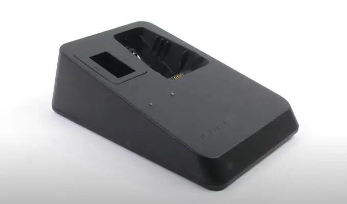 Die Ladestation kann verwendet werden, um das Gerät zu halten, den Akku im Griff aufzuladen und den Ersatzakku aufzuladen. Beachten Sie, dass die Modelle Vanta Element und Vanta Element-S (kostengünstige Modelle) mit einem externen Akkuladegerät anstelle der Ladestation geliefert werden.