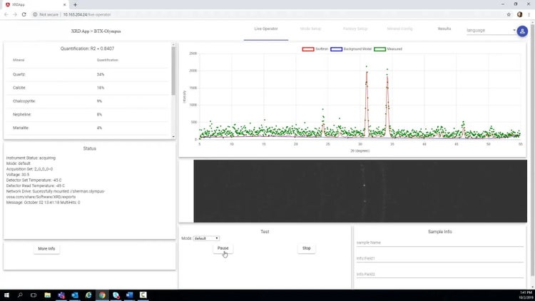 - Die SwiftMin Software ermöglicht eine automatisierte Phasenidentifikation und quantitative Analyse, die Daten in Echtzeit direkt auf dem XRD-Analysator oder der intuitiven Benutzeroberfläche bereitstellt.