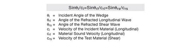 Die am meisten verwendeten Winkelprüfköpfe erzeugen eine gebrochene Transversalwelle unter Standardwinkeln von 45°, 60° oder 70° im Prüfteil. Der Einschallwinkel, der zur Erzeugung des gewünschten Einschallwinkels erforderlich ist, basiert auf der Schallgeschwindigkeit im Material und wird nach der Gleichung des Snelliusschen Gesetzes berechnet.