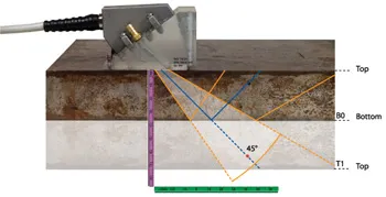 Als erstes muss daran erinnert werden, dass der Schallaustrittspunkt (der Punkt in dem das Zentrum des Schallbündels aus dem Vorlaufkeil austritt) bei Prüfköpfen für konventionellen Ultraschall fest ist bei Phased-Array-Vorlaufkeilen beweglich. Beim Linien-Scan bewegt sich der Schallautrittspunkt schrittweise in Längsrichtung des Sensors. Beim Sektor-Scan mit Schrägeinschallung treten verschiedene Winkelkomponenten an verschiedenen Stellen aus dem Vorlaufkeil aus.