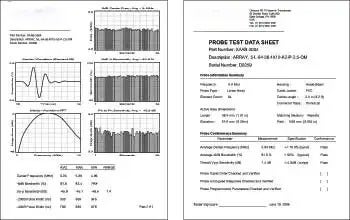 A Probe Test Data Sheet is supplied with the purchase of any probe. This form presents the following information: