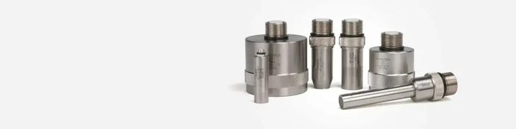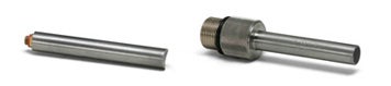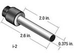 Elemente mit einem Durchmesser von 6 mm (0,25 Zoll) und Gehäusen mit einem Durchmesser von 10 mm (0,375 Zoll) für schwer zugängliche Kehlnähte oder Bohrungsbereiche sind mit geraden Microdot (I-1) oder geraden UHF (I-2) Anschlüssen und 303 Edelstahlgehäusen erhältlich.