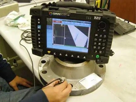 Phased Array Transducer can be placed on the angled section of the flange