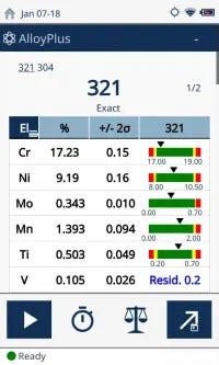 - Comprehensive grade identification: The standard grade library includes more than 600 unique alloy grades. The residual ‘tramp’ library, based on industry standards, simplifies grade matching.