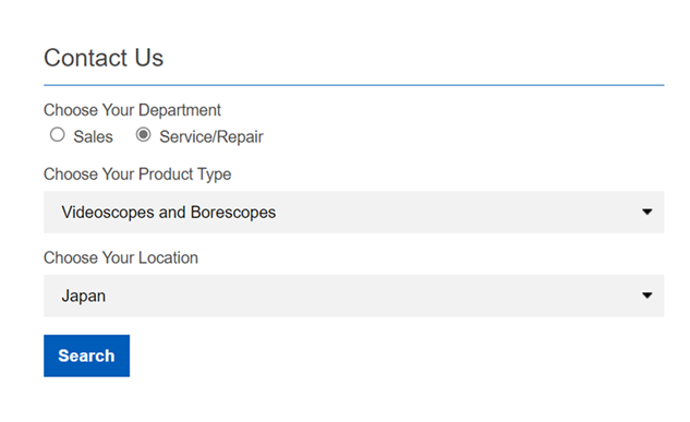 If your product was affected, please contact us using our online inquiry form to request a free repair. Select Service/Repair for the department and Videoscopes and Borescopes for the product type. Then select the location that applies to your country/region.