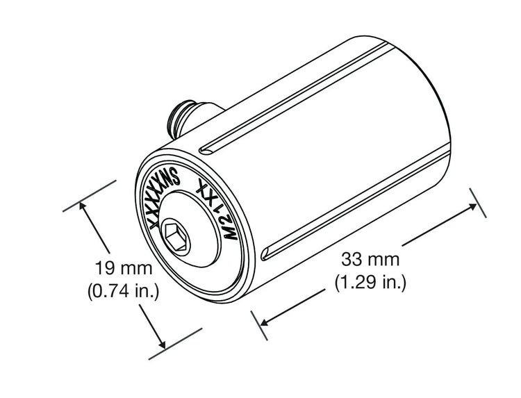 M2104: Special high-frequency standoff transducer, 125 MHz, tip diameter of 0.74 in (18.8 mm). Includes test form certificate.
