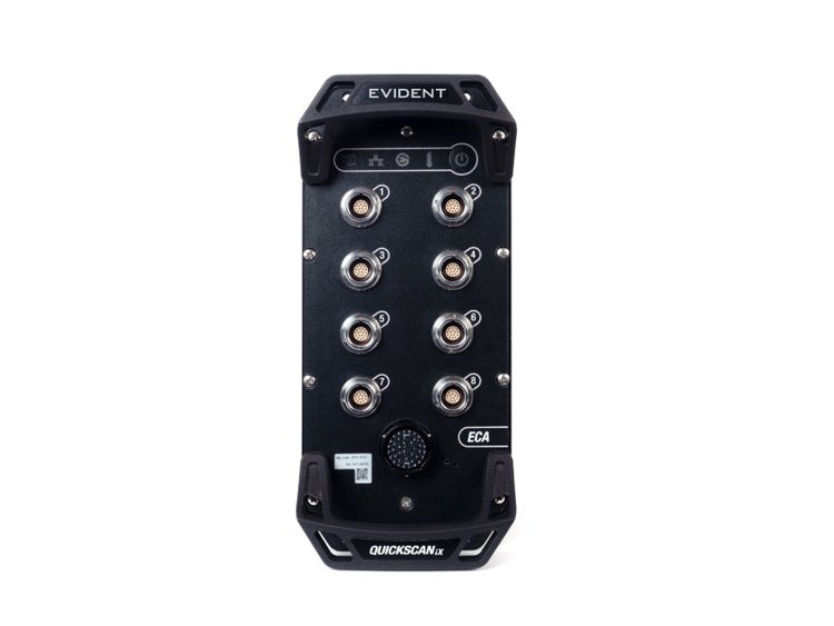 The QuickScan iX ECA acquisition instrument is specifically designed for surface inspections in a material production environment. Its design meets the same reliable 24 V I/O industrial standards as the field proven QuickScan iX PA instrument. Up to eight probes can be connected per unit. Several acquisition units can be combined for more demanding configurations in terms of probes or speed.