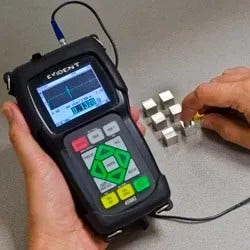 Las mediciones de la velocidad destinadas a calcular los módulos, por lo general, se llevan a cabo mediante medidores de espesores precisos, como los instrumentos 39DL PLUS o 45MG— con la opción de software Sonda monoelemento—, o mediante un detector de defectos que permite medir la velocidad, como los instrumentos de la serie EPOCH™ 650 / EPOCH 6LT. El medidor de espesores 72DL PLUS™, por su parte, ofrece mediciones de tiempo de vuelo (TOF) con una resolución más elevada, lo que favorece mediciones de la velocidad más precisas.