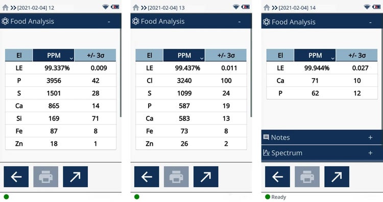 Estos análisis de elementos revelan claramente la contaminación de los alimentos y bebidas de consumo, lo que demuestra el rendimiento analítico del analizador XRF portátil Vanta.