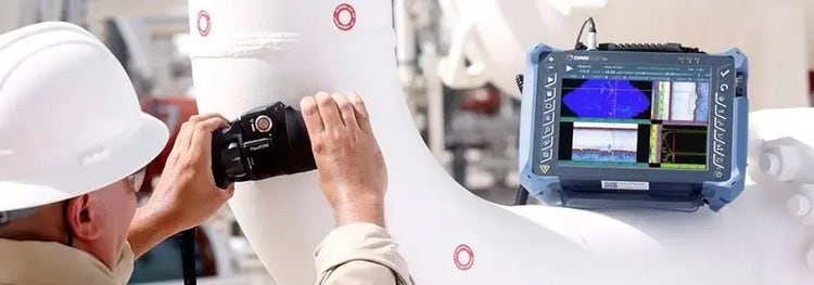 Al usar esta solución de escáner de ultrasonido multielemento, los inspectores —pertenecientes al sector de generación de energía y al sector del petróleo y el gas— pueden obtener mapeos del espesor de alta resolución de los codos de tuberías. El escáner FlexoFORM para codos de tuberías permite dictar un diagnóstico con rapidez y precisión relativo a la pérdida de espesor de pared producida por la corrosión acelerada de flujo (FAC) o la corrosión por erosión. La sonda flexible de ultrasonido multielemento (Phased Array) y las suelas (zapatas) de inmersión local en agua, suministradas con la solución de escáner FlexoFORM, resuelven problemas pasados que existían con las sondas rígidas de ultrasonido multielemento, ya que ahora es posible adaptarlas a un amplio rango de diámetros de tuberías. La solución es económica, fácil de usar y puede ayudar a los inspectores a lograr mejoras significativas en la productividad.