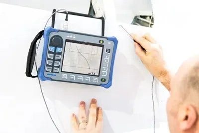 El NORTEC 600 ofrece una configuración de inspección lista para las inspecciones de soldaduras. Esto permite simplificar la calibración y la preparación del instrumento. El espesor de la pintura también puede evaluarse en ambos modos de frecuencia, ya sea simple o doble (sólo en el modelo NORTEC 600D).