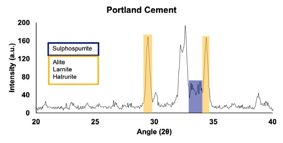 XRD analysis of Portland cement identifies and quantifies sulphospurrite.