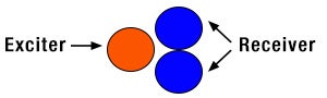 The probe is used with a cable that connects the coils in a transmit-receive configuration in which one coil is an exciter and 2 coils are receivers as shown below: