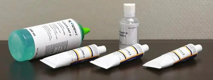 Cabe destacar que el aceite de silicona y el propilenglicol —ofrecidos anteriormente por Evident— también son acoplantes frecuentemente utilizados. Las versiones genéricas de estos acoplantes pueden ser adquiridas de proveedores químicos.