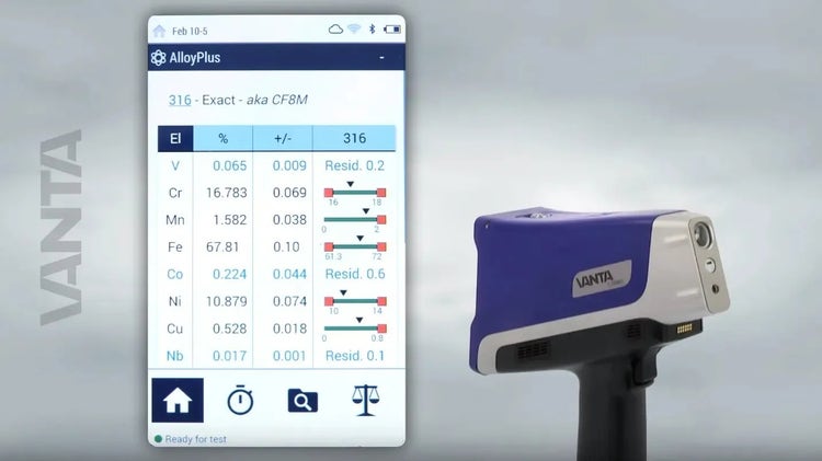 Los analizadores XRF portátiles Vanta para la identificación positiva de materiales (PMI) efectúan el análisis químico altamente específico de la composición química del material, permitiendo identificar con rapidez y precisión los grados de las aleaciones para asegurar su correcta instalación en puntos críticos.