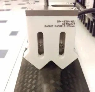 Figura 3: Matriz de elementos de curva cóncava de 25 mm sobre un soporte introducido para inspeccionar el radio de CFRP