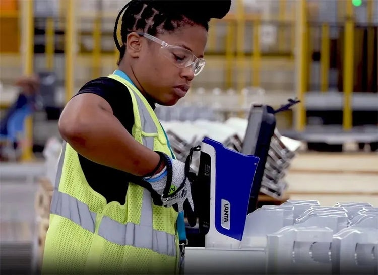 Operador verificando la composición del material con un analizador de fluorescencia de rayos X (XRF) portátil Vanta.