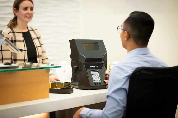 Si bien este ejemplo usa un analizador de metales preciosos, los comandos añadidos Vanta pueden aplicarse a cualquier analizador XRF de nuestra serie Vanta, como un analizador XRF para líneas de producción.