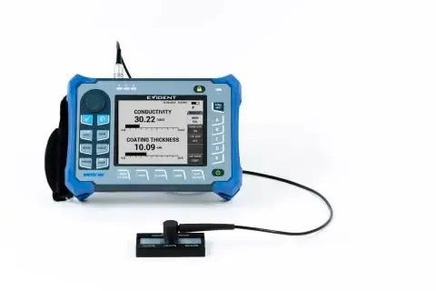 Nuestras sondas de conductividad usan un sistema para medir y certificar la conductividad eléctrica de los metales; éste se ejecuta con la técnica de resistencia de CC de cuatro puntas para los estándares primarios. Evident mantiene estos estándares en todo momento y vuelven a ser certificados a intervalos prestablecidos para cumplir con la normativa de trazabilidad del NIST. Los estándares primarios y las piezas de ensayo se mantienen en un entorno de 20 °C (±10 °C) y las piezas de ensayo se miden usando el método de transferencia de impedancia de CA. Todo el sistema está controlado por PC para lograr precisión y repetibilidad.