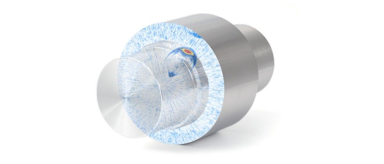 Combine diferentes haces acústicos en un solo grupo con la función de combinación volumétrica TomoView. La vista combinada proporciona una clara representación de la pieza completa bajo inspección, lo que facilita aún más el análisis de las indicaciones (defectos).