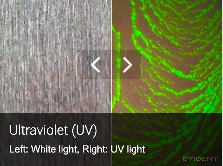 - Opciones de iluminación flexible UV e IR: Detecte grietas finísimas invisibles usando la iluminación ultravioleta (UV), y examine objetos en áreas oscuras gracias a la iluminación infrarroja (IR); la fuente de luz LED intercambiable eleva las capacidades del videoscopio*.