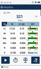 - Identification de nuance détaillée : La bibliothèque des nuances de base contient au-delà de 600 nuances d’alliage unique. La bibliothèque des éléments traces, basée sur les normes de l’industrie, simplifie le travail de correspondance des nuances.