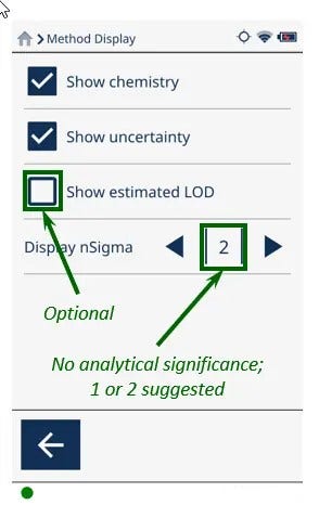 L’option « Display nSigma » n’a aucun impact sur l’équivalence des nuances ou les résultats analytiques. Vous pouvez sélectionner 1, 2 ou 3 selon la plage d’incertitudes que vous souhaitez afficher à l’écran. Une valeur de 1 ou 2 pour l’option « Display nSigma » est un choix courant, mais la précision de l’analyseur Vanta est si élevée que la différence entre les options est négligeable.