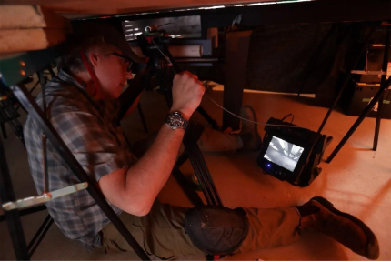 Jeff et son collègue cinéaste Alastair MacEwen utilisent un équipement comprenant l’un de nos boroscopes rigides
