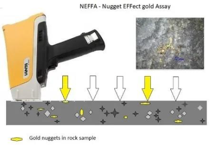 Ainsi, la technique NEFFA vise à transformer en opportunité le défi classique associé à l’effet de pépite. La technique NEFFA tente de mesurer l’effet de pépite grâce à plusieurs analyses systématiques non destructives d’un matériau géologique (généralement de la pierre concassée ou des carottes de forage concassées) afin d’identifier la présence d’or ou d’autres métaux précieux en fonction de leur distribution dans l’échantillon.