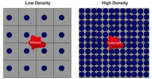 Munies de petits éléments, les sondes DLA permettent l’inspection plus rapide de points de données haute densité que les sondes UT conventionnels. La haute densité réduit les risques d’ignorer les petites indications.
