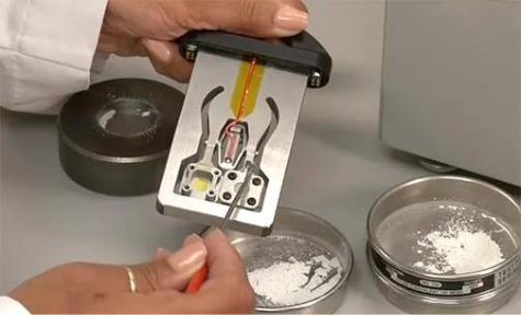 D’abord, réduisez en poudre l’échantillon. Pour ce faire, il suffit d’écraser la matière. Des accessoires inclus avec l’analyseur simplifient au maximum la collecte et la préparation des échantillons.