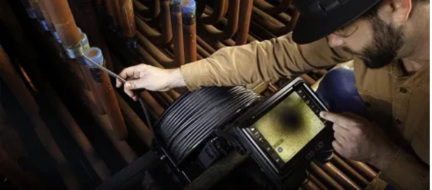 Les inspections visuelles à distance se font au moyen d’un équipement externe doté d’une caméra. Les inspecteurs utilisent des vidéoscopes pour accéder aux zones cibles, et grâce à la technologie vidéo, ils peuvent analyser ces zones à distance au moyen d’un moniteur. Les données d’image peuvent être visualisées en temps réel sur l’écran et enregistrées à des fins d’évaluation, d’analyse et de création de rapports ultérieures.