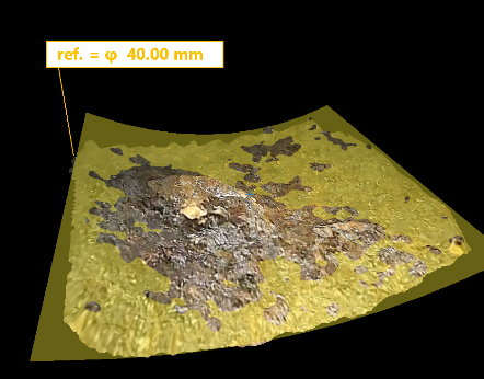Vue 3D d’un échantillon présentant une bosse
