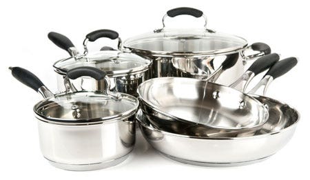 Many common pots and pans used for home and restaurant cooking are constructed from multiple layers of metal. Stainless steel is easy to clean and does not react with foods, but it is not an ideal conductor of heat for cookware, especially in thin sheets. Aluminum and copper conduct heat quickly and efficiently, but can react with acidic foods like tomatoes or citrus fruits, and are also more expensive than steel. For that reason, clad metal cookware was developed, incorporating a stainless steel body with a base made from a relatively thick core of either copper or aluminum sandwiched between two thin layers of steel, normally less than 1 mm (0.040") thick. The thermally conductive core provides optimum heat distribution across the bottom of the pan, while the nonreactive stainless steel contacts the food while also presenting a good appearance.