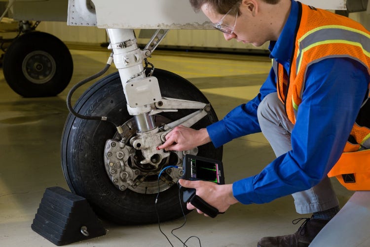 Gli operatori NDT di aerei durante le ispezioni dovrebbero utilizzare diverse tecnologie non distruttive come gli ultrasuoni, l'eddy current e i sistemi video in remoto. Il rilevatore di difetti dell'EPOCH 6LT è resistente, compatto e può essere trasportato facilmente insieme ad altra apparecchiatura in una borsa. L'interfaccia utente è intuitiva permettendo di ottenere dei risultati di ispezione affidabili, anche se non si utilizzano con regolarità i rilevatori di difetti ad ultrasuoni. Visto che numerosi rivestimenti e componenti di aerei sono costruiti con materiali compositi di difficile ispezione, il rilevatore di difetti ad ultrasuoni EPOCH 6LT è caratterizzato da una potenza del pulsatore e da un rapporto segnale-rumore necessari per realizzare queste applicazioni complesse.