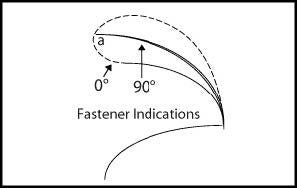- To find a crack direction more accurately, approach the fastener at different angles until you obtain the largest indication.