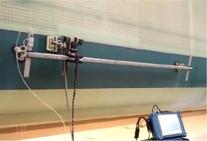I test sono stati eseguiti su una pala eolica in produzione mediante uno scanner personalizzato con encoding su due assi simile alo scanner GLIDER™. I dati sono stati acquisiti con un rilevatore di difetti OmniScan MX2 con una sonda I5 PA da 1 MHz e un supporto a semi-contatto.