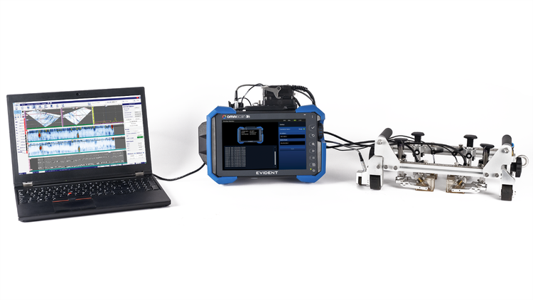 Configurazione della mappatura della corrosione con combinazione dello scanner SteerROVER™, dello scanner HydroFORM™ e del rilevatore di difetti OmniScan X4 Evident.
