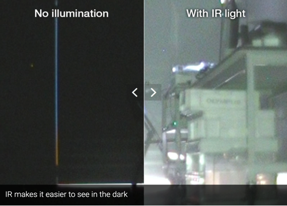 Usare il generatore di luce bianca per le applicazioni standard e passare al generatore di luce infrarossa (IR) per ispezionare oggetti sospetti in ambienti con scarsissima illuminazione o container.