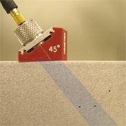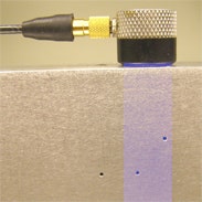 Un trasduttore a fasci angolari a singolo elemento usato con un rilevatore di difetti convenzionale genererà un fascio lungo un percorso angolare. Sebbene l'effetto di diffusione dei fasci causa un incremento del diametro dei fasci all'aumento della distanza, l'area di copertura di un campo visivo di un fascio angolare convenzionale sarà essenzialmente ancora limitato da un percorso angolare. Nel seguente esempio uno zoccolo a 45° in una posizione fissa è in grado di rilevare due dei fori SDH nel blocco di riferimento in quanto rientrano nel suo fascio, tuttavia non è possibile rilevare il terzo senza muovere il trasduttore in avanti.