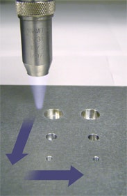 Le immagini che seguono mostrano dei C-scan di un blocco di riferimento con un sistema di scansione a immersione convenzionale con un trasduttore a immersione focalizzato e un sistema phased array portatile che utilizza uno scanner manuale con encoder e un array lineare. Sebbene la risoluzione grafica non sia completamente equivalente, è necessario fare altre considerazioni. I sistemi phased array sono portatili (i sistemi ad ultrasuoni convenzionali non lo sono) e costano circa un terzo. Inoltre le immagini phased array vengono generate in pochi secondi mentre sono necessari diversi minuti per effettuare le scansioni ad immersioni con ultrasuoni convenzionali.
